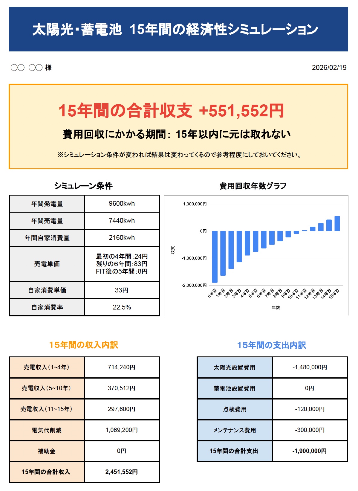 お伺いした内容の条件をもとに、経済メリットをシミュレーションさせていただきます。