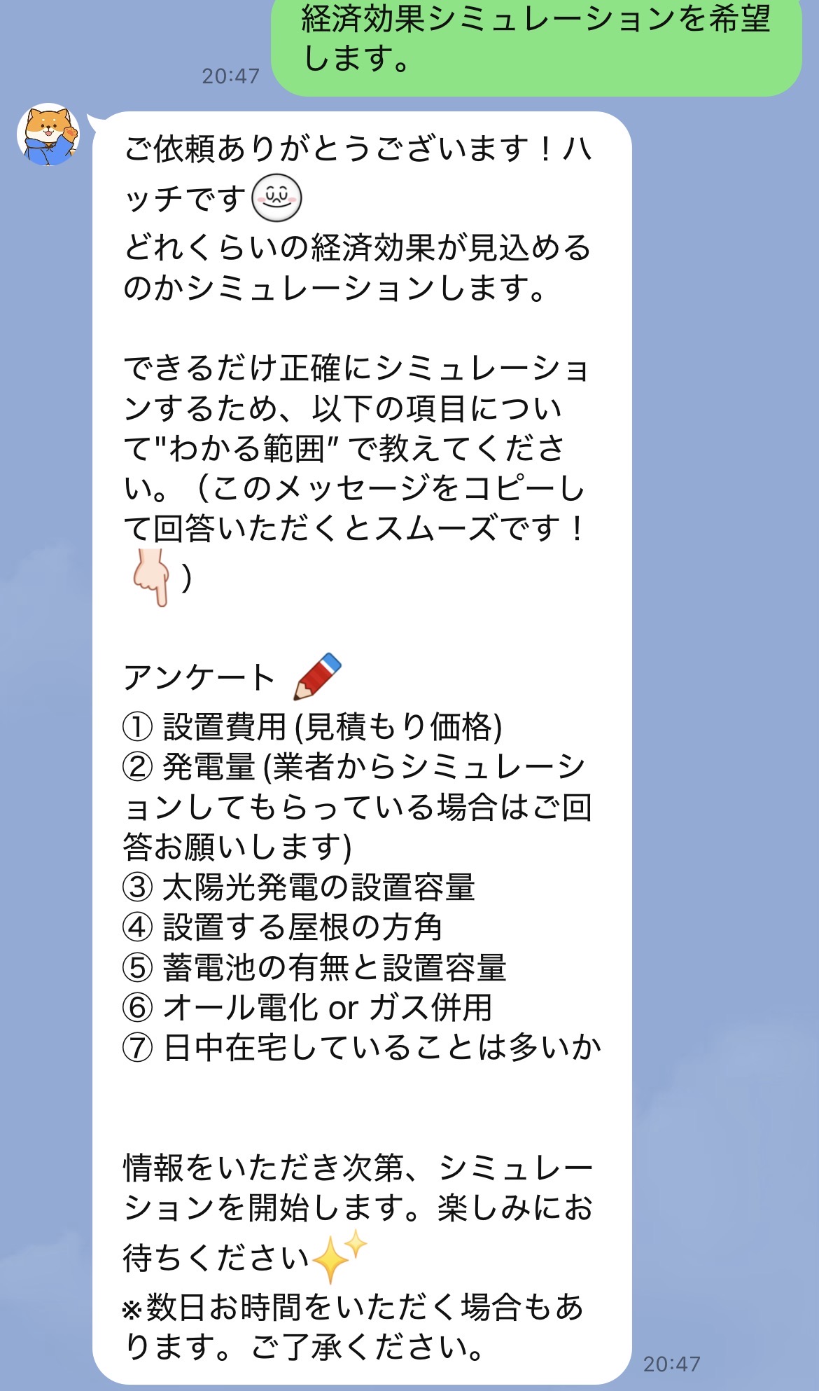 家庭用太陽光発電に関するLINE相談サービス。お得な太陽光発電が実現できる!