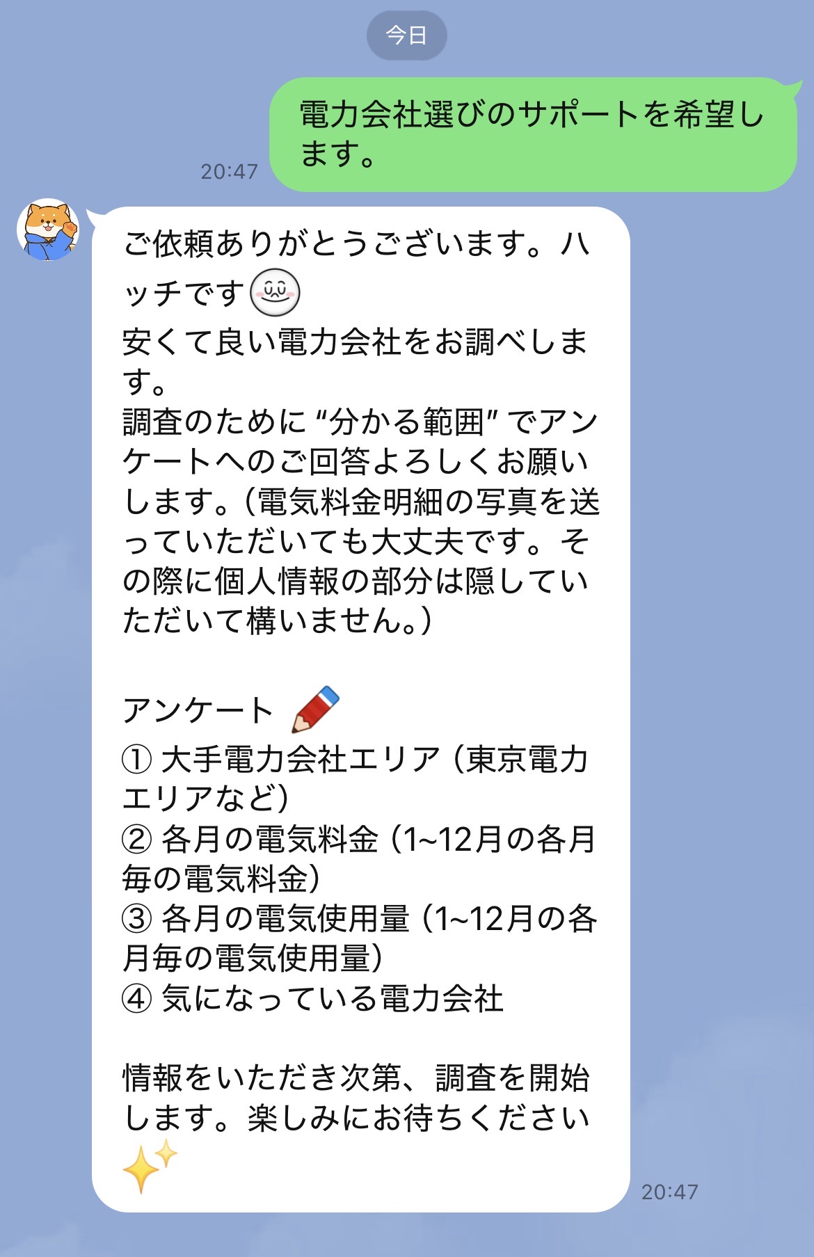 公式LINE:電力会社選びサポート